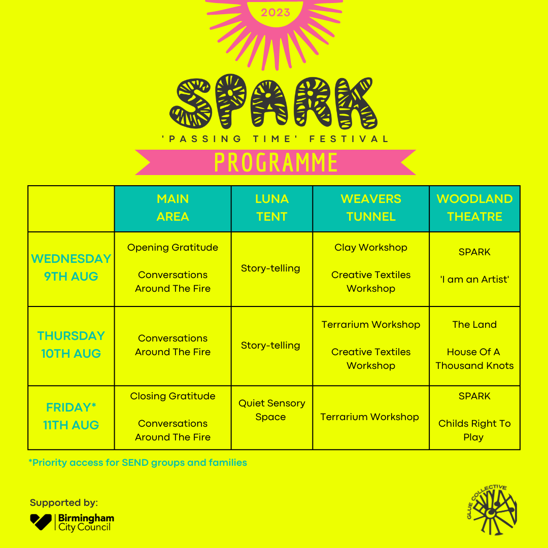 As night falls, Spark in the Dark brings Glue Garden to life in a end of year celebration of art, play and connection under the night sky.